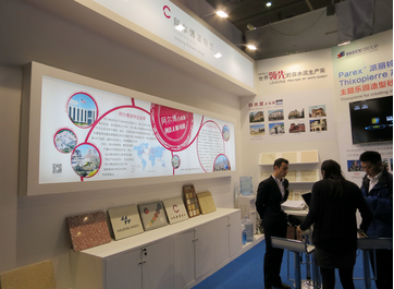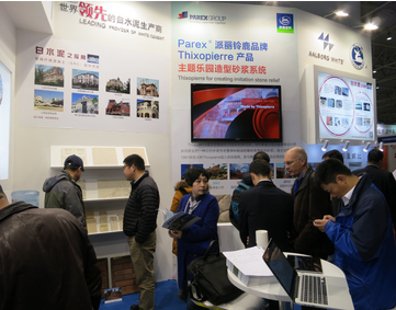 The 11th Construc Tech Exhibition was successfully held in Beijing during 13th to 15th Mar,2015. As the only White Cement exhibitor, APAQ preserved the classic style and added some new elements at the booth. APAQ invited Parex who is the leading special mortar producer in the world to display their classic White Cement application products named Thixopierre series. Rock and carving wooden texture finishing effect made in special mortar, displaying in this exhibition are applied in many projects especially in the theme parks like Disneyland Project.